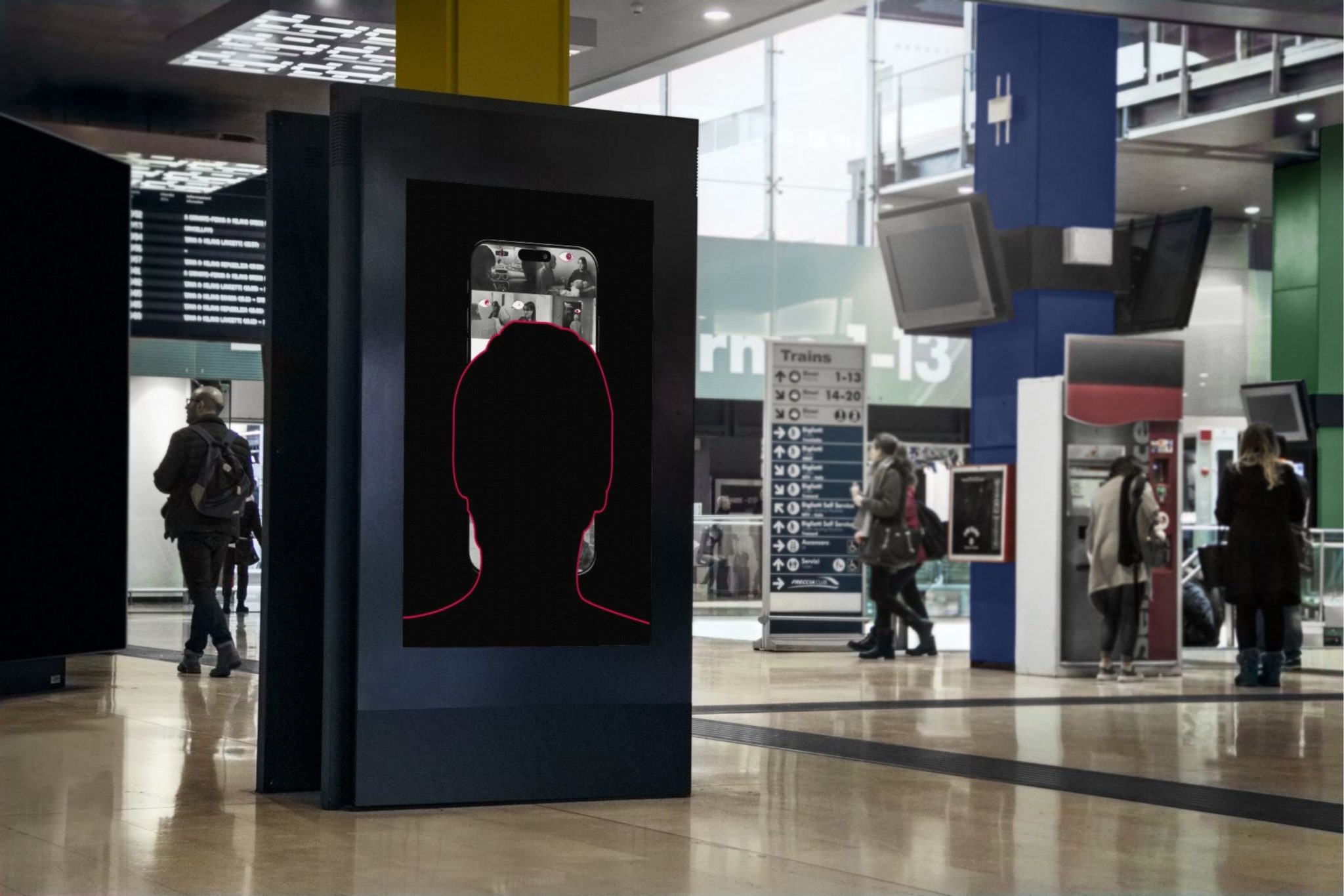 Des silhouettes en carton pourraient être imprimées. Ces dernières reprendraient le même concept que les affiches avec les personnalités publiques et l’œil rouge qui cache leur visage. Une caméra pourrait ensuite être cachée au niveau de l’œil, l’utilisateur scannerait un QR Code et il verrait une retransmission en direct de la caméra. Cela permettrait de créer une expérience immersive qui sensibilise les personnes au fait qu’elles sont constamment observées sans même le savoir.